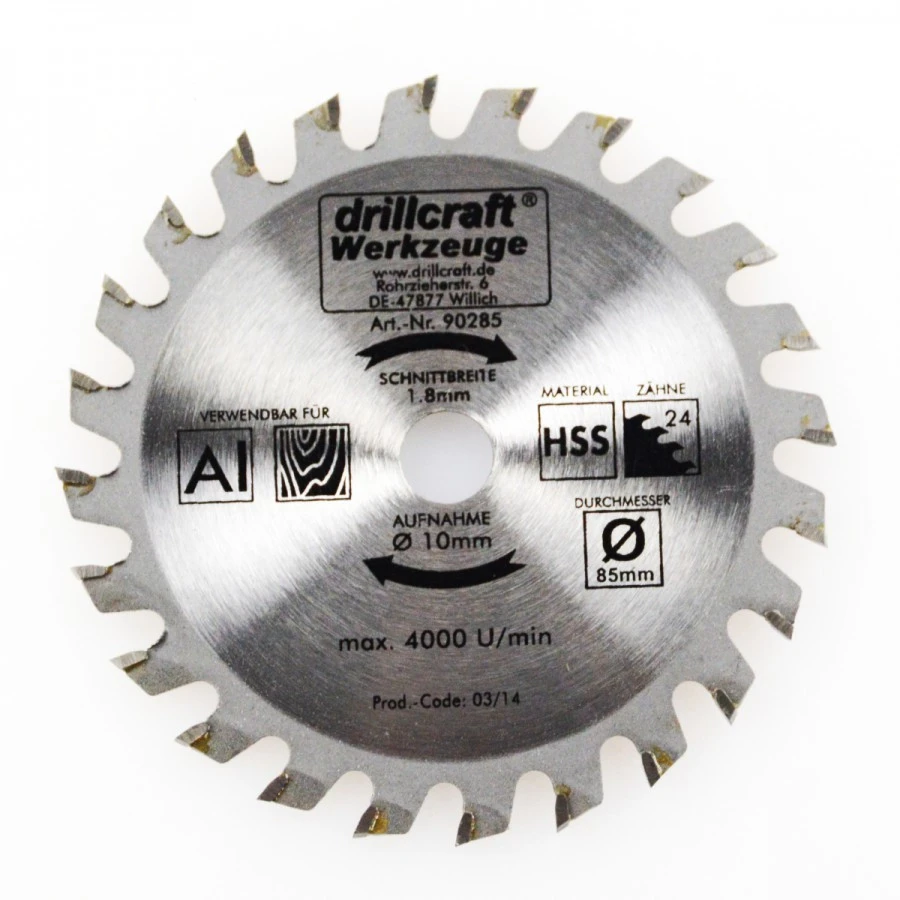 HM Kreissägeblatt 85mm 24 Zähne Mini Sägeblatt Alu Kunststoffe Handkreissäge