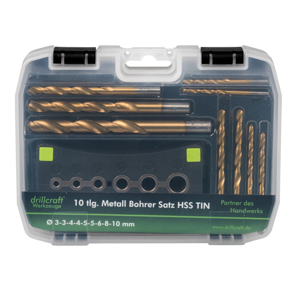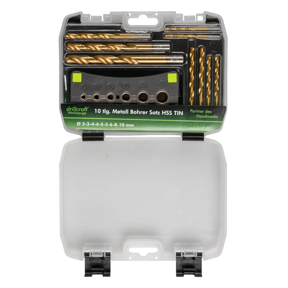 HSS TIN Bohrersatz 10-teilig, 2-10 mm, mit Bohrhilfe