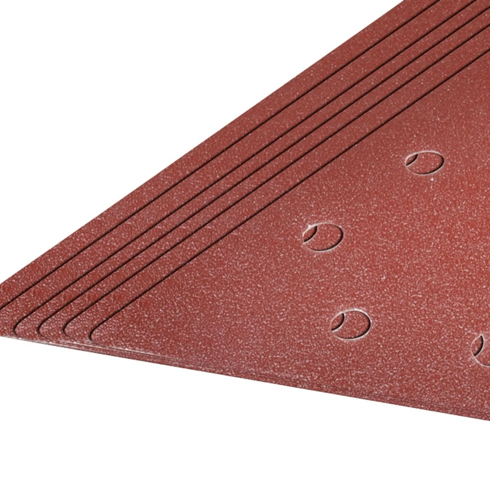 Schleifpapier-Set in Triangelform, mit Lochung zur Absaugung und Klettbefestigung. 10 Schleifpapiere mit verschiedenen Körnungen: 80 / 100 / 120 / 150 / 180 / 240