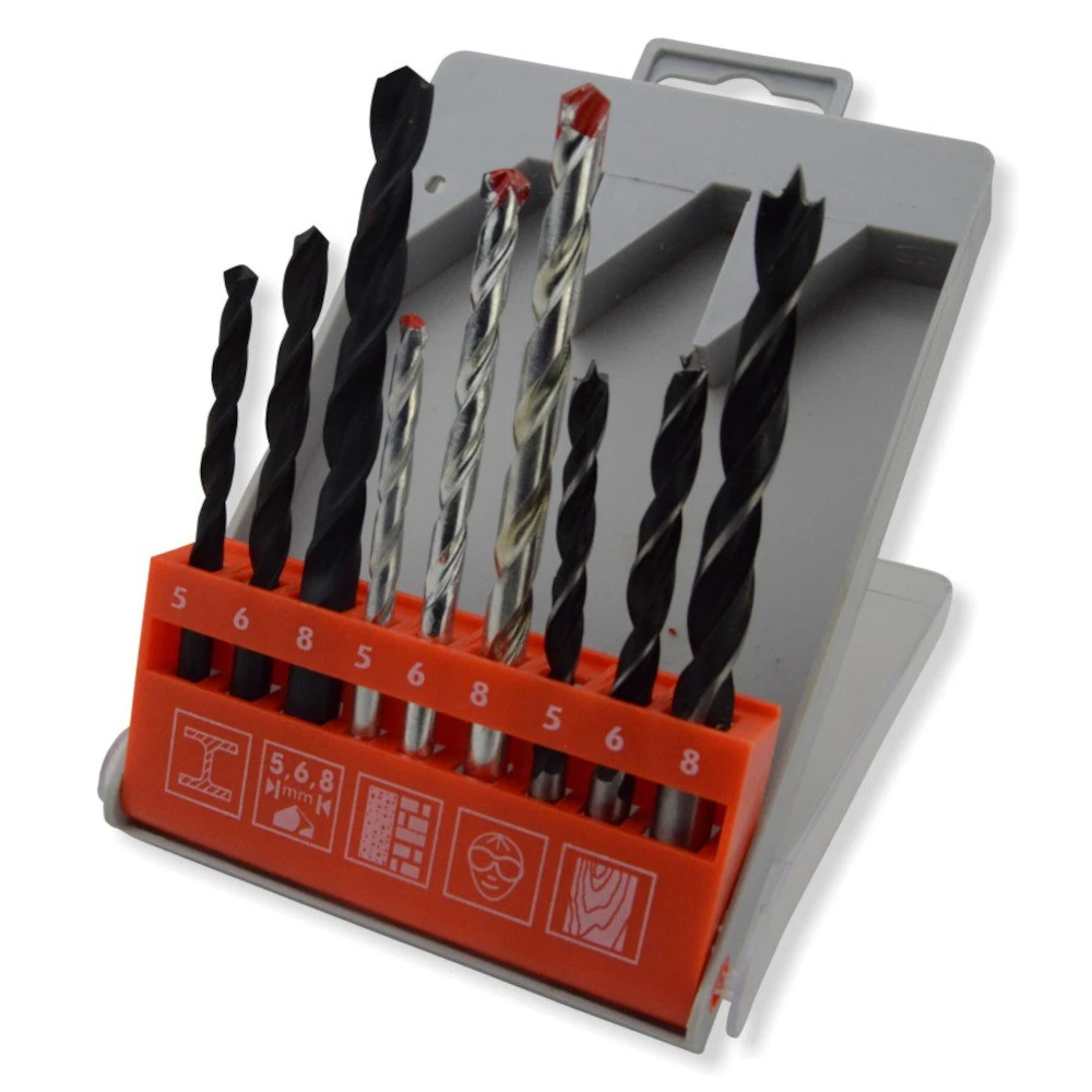 Kombi-Bohrersatz 9-teilig mit Kunststoffbox