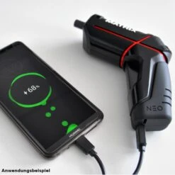 Der praktische 2in1 Matrix Akkuschrauber NEO mit kompakter Bauweise und geringem Gewicht fĂŒr den anspruchsvollen Heimwerker. Sein fest verbauter Lithium-Ionen-Akku ĂŒberzeugt durch eine AkkukapazitĂ€t von 2 Ah. Sein Touch-Sensor dient zur Einstellung des Rechts-/Linkslaufes und durch gedrĂŒckt halten wird der Akku-Ladestand angezeigt. Der rutschfeste, gummierte Griff als auch der Micro-Druckknopf fĂŒr prĂ€zise Einhandbedienung sind weitere Eigenschaften des Akkuschraubers. Dank der eingebauten Halo-LED-Beleuchtung ist selbst an schwer zugĂ€nglichen Stellen fĂŒr eine klare Sicht ohne Schattierungen gesorgt. DarĂŒber hinaus kann der Schraubendreher per USB-Kabel Typ C als auch dem Micro USB-Adapters als Power Bank fĂŒr sĂ€mtliche Smart-GerĂ€te genutzt werden. Im Lieferumfang sind ein 14-teiliges Bitset inklusive magnetischer Bithalter, eine Tragetasche, ein Ladestecker als auch ein USB-Kabel mit Micro-USB-Adapter enthalten.