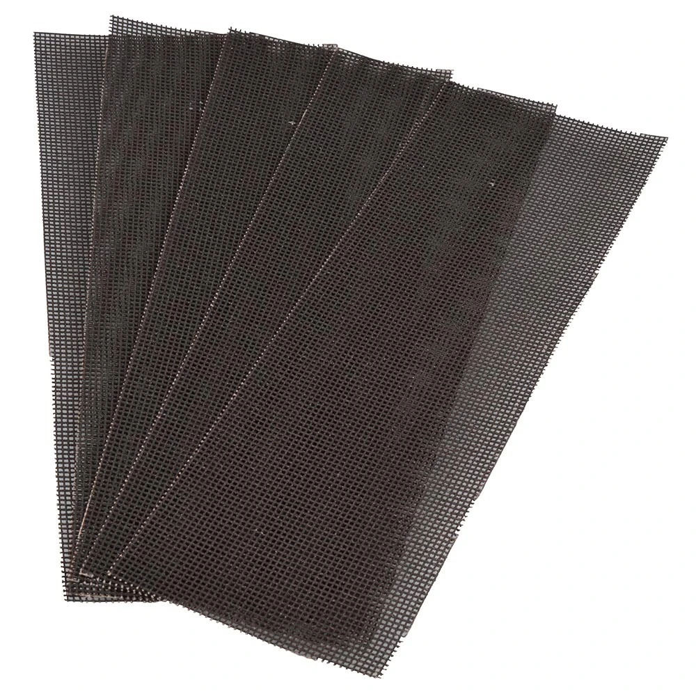 5 Blatt Schleifgitter mit einer 120er Körnung fĂŒr Schleifarbeiten im Trockenbau. Das Schleifgitter ist extra robust, besitzt eine hohe Standfestigkeit und lange Lebensdauer. Ideal fĂŒr den Zwischenschliff mit mittlerem Material-Abtrag. Durch die Gitterstruktur des Schleifmittels entsteht weniger Schleifstaub gegenĂŒber dem klassischen Schleifpapier.